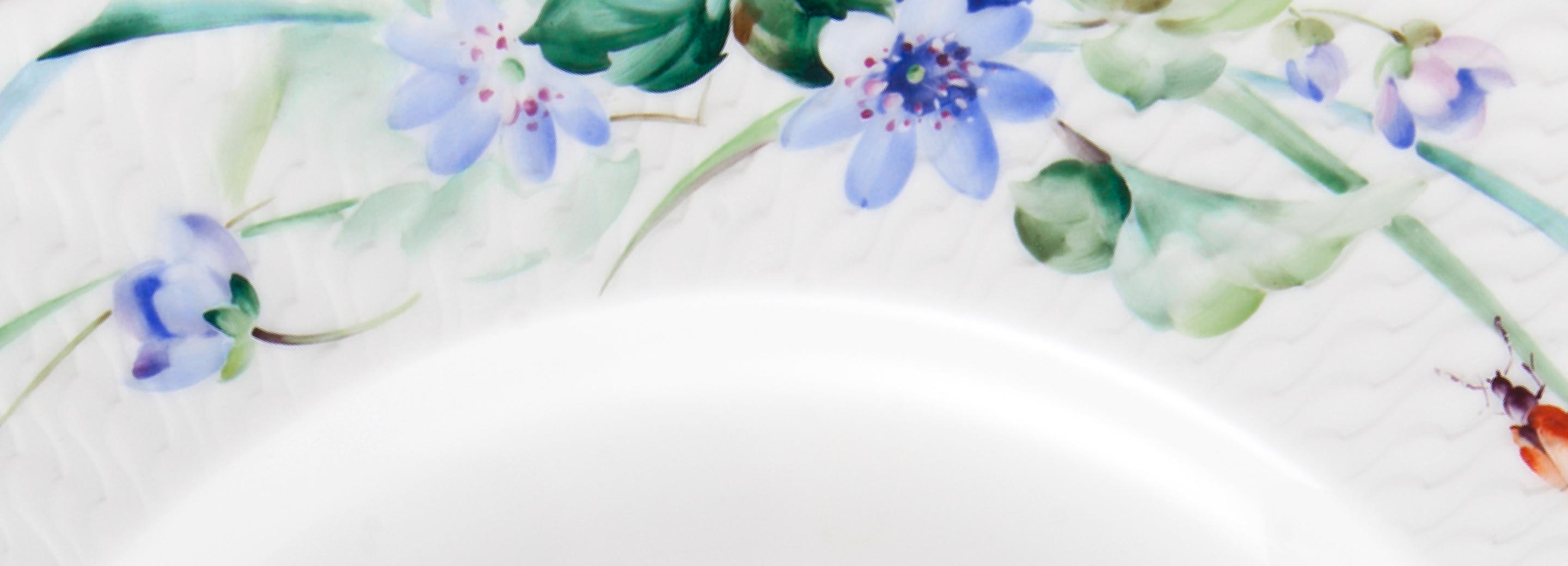 Gestreute Blümchen„Gestreute Blümchen“ gehört zu den beliebtesten Dekoren der Manufaktur Meissen. Anfang des 19. Jahrhunderts entstanden, ist er eine typische Schöpfung des Biedermeier. Blüten und Blumen sollen in ihrer natürlichen Schönheit gezeigt werden und sich damit erstmals von den ‘indianischen’ nach ostasiatischen Vorbildern absetzen. Als besondere Spielart der Manierblumenmalerei, besitzt der Meissener Dekor eigene Merkmale. Eine vergrößerte Mittelblume wird von mehreren vielgestaltig variierten kleineren Blumen umstreut. Die Porzellanmaler können hierfür auf drei Dutzend Blumenmotive zurückgreifen – jedes mit eigener Symbolik, die zu Zeiten des Biedermeier verwendet wird, um Gedanken und Empfindungen auszudrücken. En Detail per Hand auf Porzellan gemalt, verleihen die „Gestreuten Blümchen“ eine besondere Lebendigkeit und innere Symbolik. -