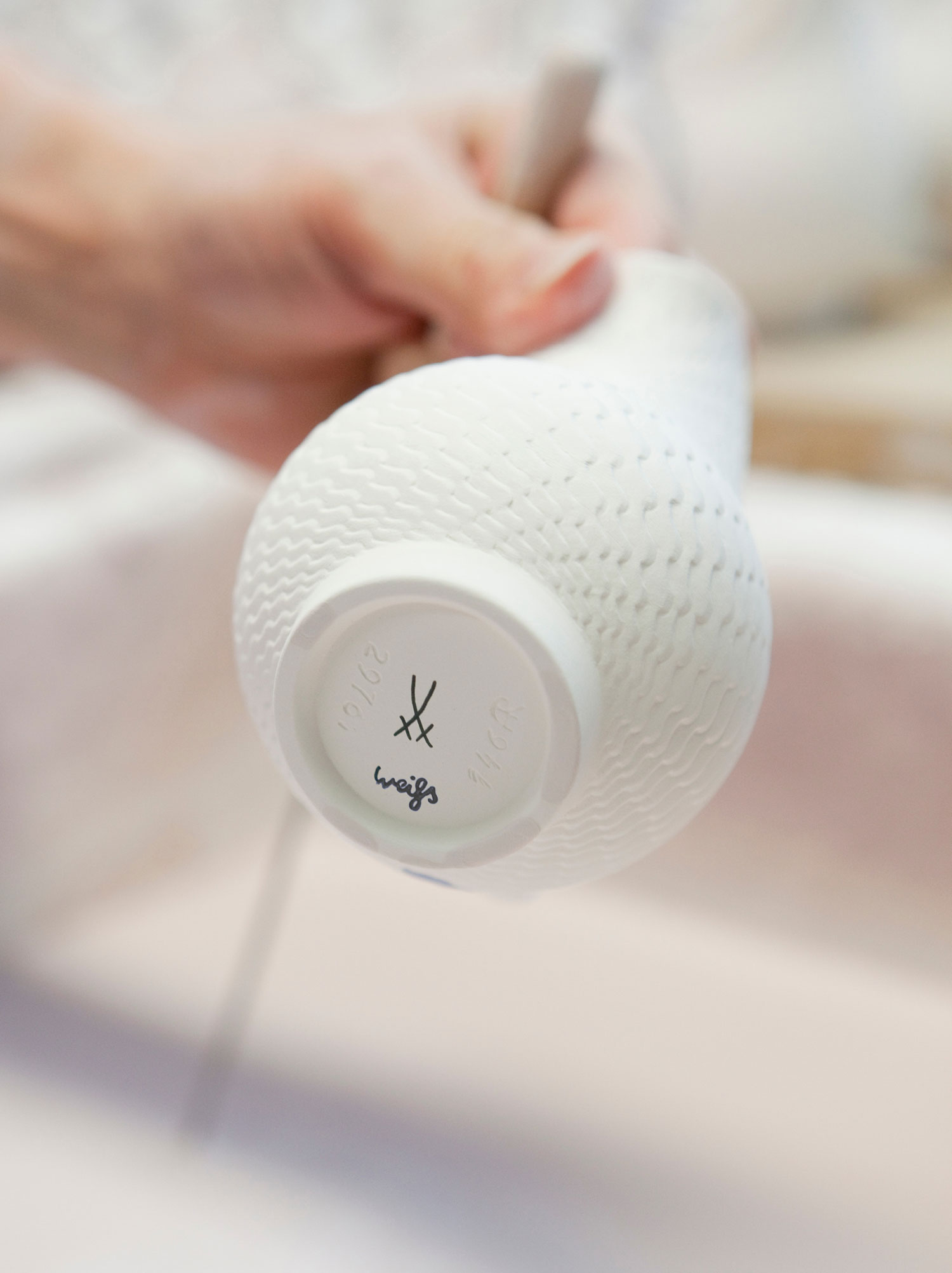 So feiert MEISSEN in diesem Jahr das „300 Jahre Schwerter-Jubiläum“ und legt besonderes Augenmerk auf den Wandel der Schwerter im Laufe der Jahrhunderte – sie blieben stets wiedererkennbar und ikonisch, doch erzählt die Schwerter-Entwicklung von verschiedenen Epochen und dem reichen Erbe der Manufaktur. Nachdem die sächsischen Kurschwerter 1722 eingeführt wurden, kennzeichnete man die Porzellane ab 1765 bis 1774 mit der so genannten „Punktschwertermarke“ als Originale, wobei die genaue Bedeutung des Punktes bis heute ein Mysterium ist. Es ist die erste große Blütezeit Meissens: unter der Leitung von Johann Gregorius Höroldt entstehen erste hitzebeständige Unter- und Aufglasurfarben mit denen ungeahnt farbenprächtige Dekore wie die „Chinoserien“ oder das „Zwiebelmuster“ möglich waren. Johann Joachim Kaendler erschuf das Opus Magnum deutscher Barockkunst – das „Schwanenservice“ mit über 2.200 Einzelteilen – sowie eine der herausragendsten Arbeiten aller Zeiten, die „Schneeballblüten“.