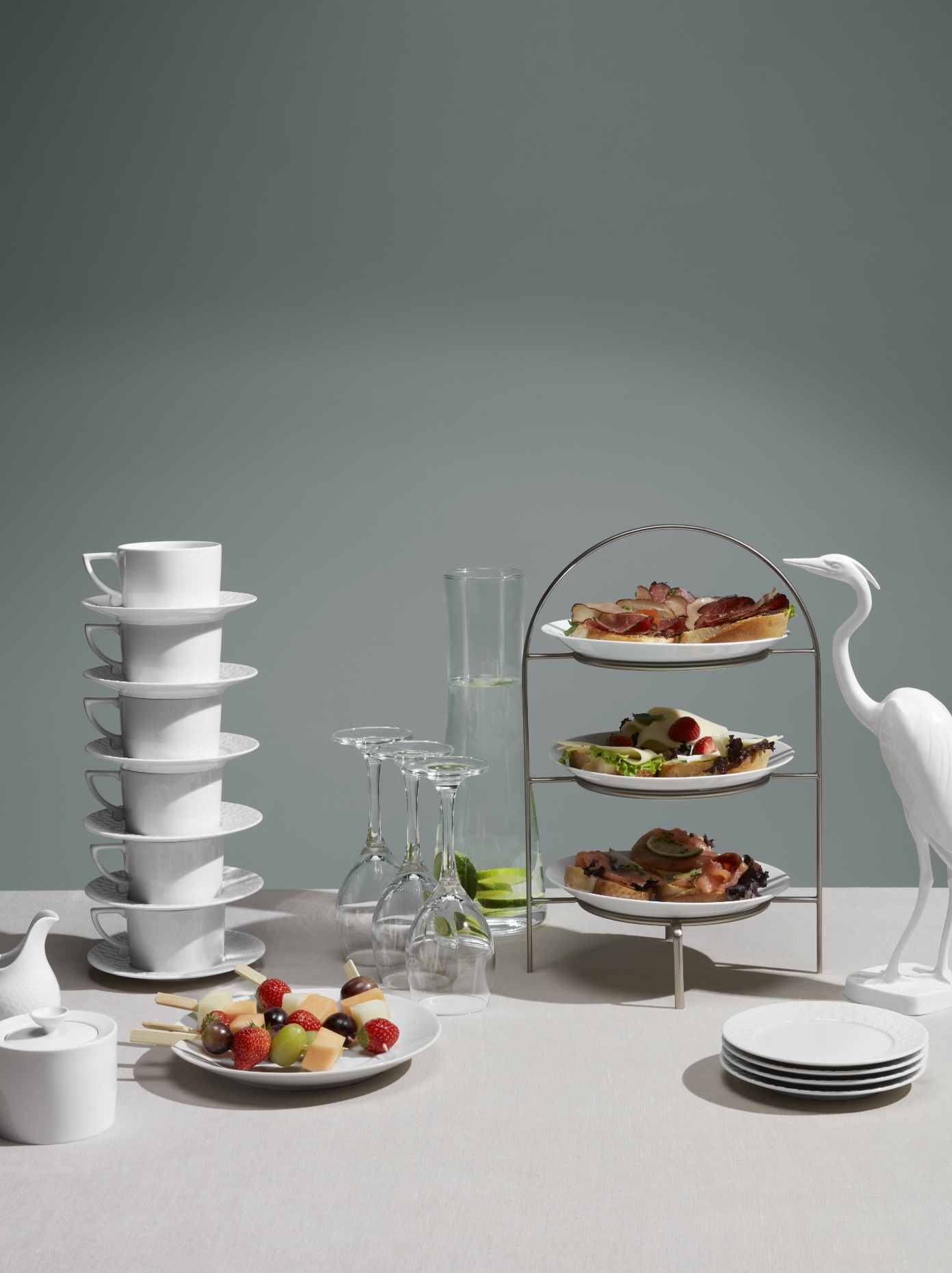 Arrangieren Sie einen liebevoll gedeckten Buffettisch mit unseren verschiedenen Tafelservices. Für eine exquisite Präsentation eignet sich eine Kombination aus unseren Wellenspielporzellanen der Form „N°41“ und „Wellenspiel Relief Asien“. Die verschiedenen Formen und Ausführungen der Porzellane sorgen für eine aufgelockerte und abwechslungsreiche Gestaltung, die Ihrer kreativen Umsetzung freien Lauf lassen. Oder verleihen Sie Ihrem Buffet moderne Eleganz mit unserer „VITRUV“ Kollektion. Das puristisches Design mit einem Relief aus geometrischen Formen und Säulen verbreitet eine vornehme, edle Atmosphäre auf Ihrem Buffet. Kombinieren Sie dazu unsere Etageren für eine stilvolle optische Komponente. Auf den verschiedenen Ebenen können Sie die Speisen platzsparend und als einen absoluten Blickfang für Ihre Gäste präsentieren.