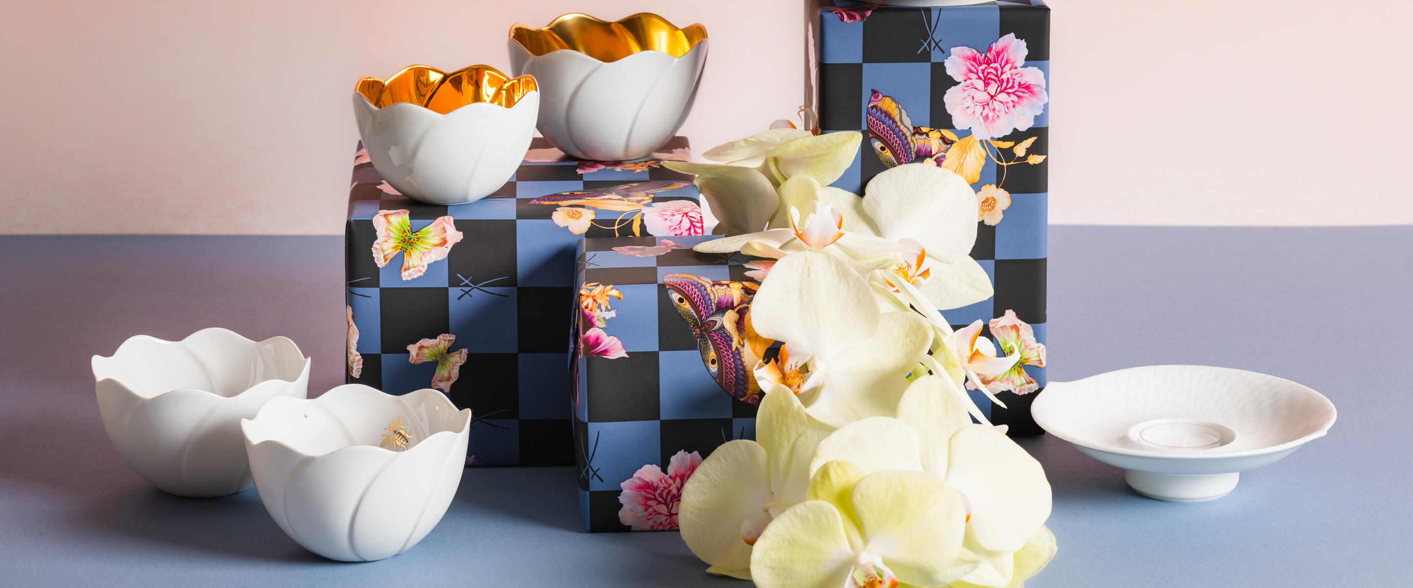 Zu Hause ist es doch am schönsten. Und so können kleine Geschenke, mit denen sich das heimische Gefilde in eine wahre Wohlfühloase verwandeln lässt, zu langlebigen Freudenbringern werden. Porzellan-Vasen, wie die Vase der „Butterfly Collection“ oder die „Landscape“-Vase bieten nicht nur die perfekte Bühne für farbenfrohe Blumenarrangements aller Art, sondern strahlen in ihrer modernen, aufregenden Form auch selbst echte Lebensfreude und Eleganz aus. Gemütlichkeit und Harmonie schaffen Sie mit Kerzenaccessoires, wie dem „Wellenspiel Relief Windlicht“ oder der „Seerosen Schale Relief“. Noch mehr Eleganz und Tradition verbreitet nur das „Royal Blossom Windlicht“ mit den ikonischen Meissener „Schneeballblüten“.