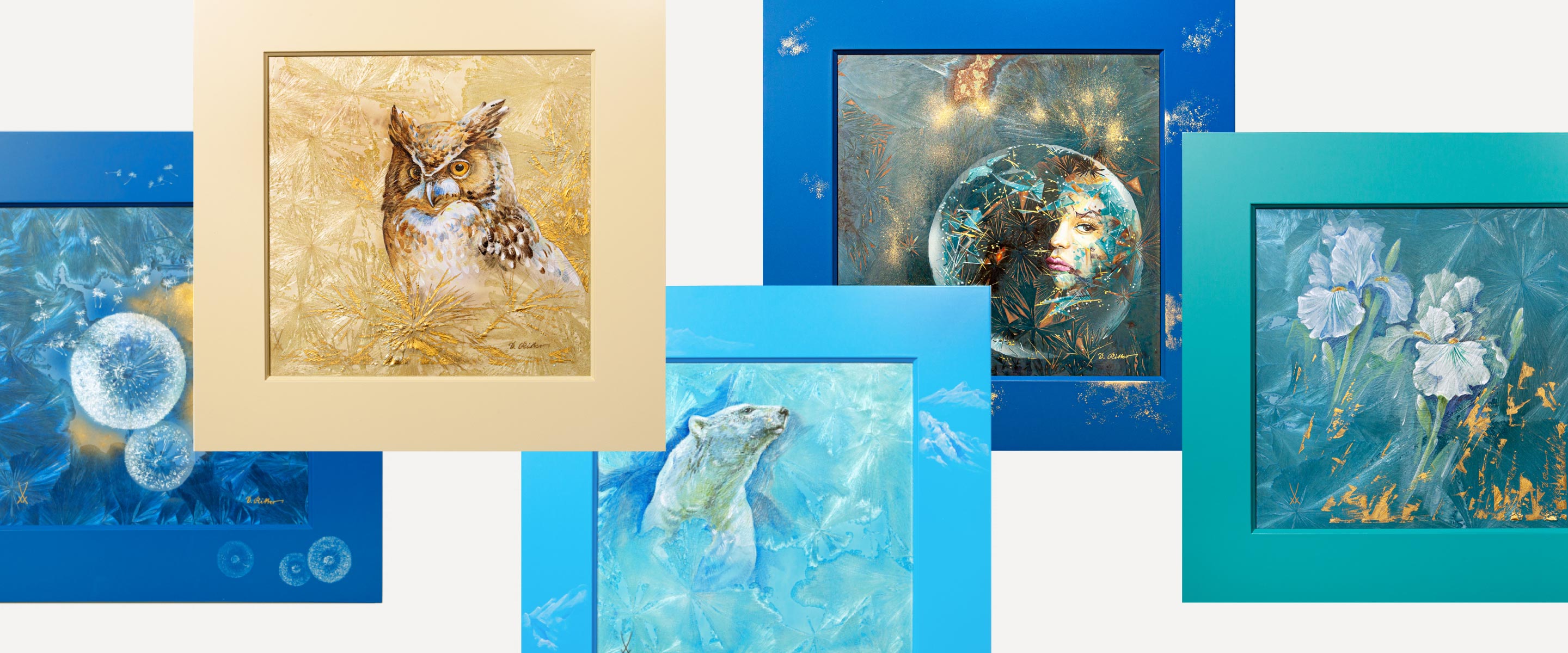Auf den mit Kristallen überzogenen Platten trug der Meissener Kunstporzellanmaler Detlef Ritter anschließend mit schöpferisch freier Hand seine Motive auf. Die Farbverläufe mit dem Pinsel über die raue Kristalloberfläche zu führen ist die hohe Kunst der Handmalerei und setzt langjährige Erfahrung in den verschiedenen Maltechniken voraus. Ritter folgte immer dem Verlauf der Kristallglasuren – und schuf so 12 zauberhafte, unikative Wandbilder voller faszinierender Effekte, die uns eine neue Welt der Porzellankunst eröffnen. Kunstwerke dieser Art haben eine lange Tradition unter den Künstlern Europas erster Porzellanmanufaktur. Bereits vor 1900 wurde diese Glasurtechnik angewandt und von dem Meissener Porzellanmaler Emil Paul Börner in den 1920er und 1930er Jahren im Stil des Art Déco weiterentwickelt. Danach gelang es dem Modelleur Ludwig Zepner Mitte der 1990er Jahre, diese Kristallglasuren wieder zu revitalisieren und unikativ auf seinen modernen Formen umzusetzen. Und so wurde eine uralte Technik über Generationen weiterentwickelt und mit der berühmten traditionellen Meissener Handmalerei kunstvoll in die Gegenwart geholt.