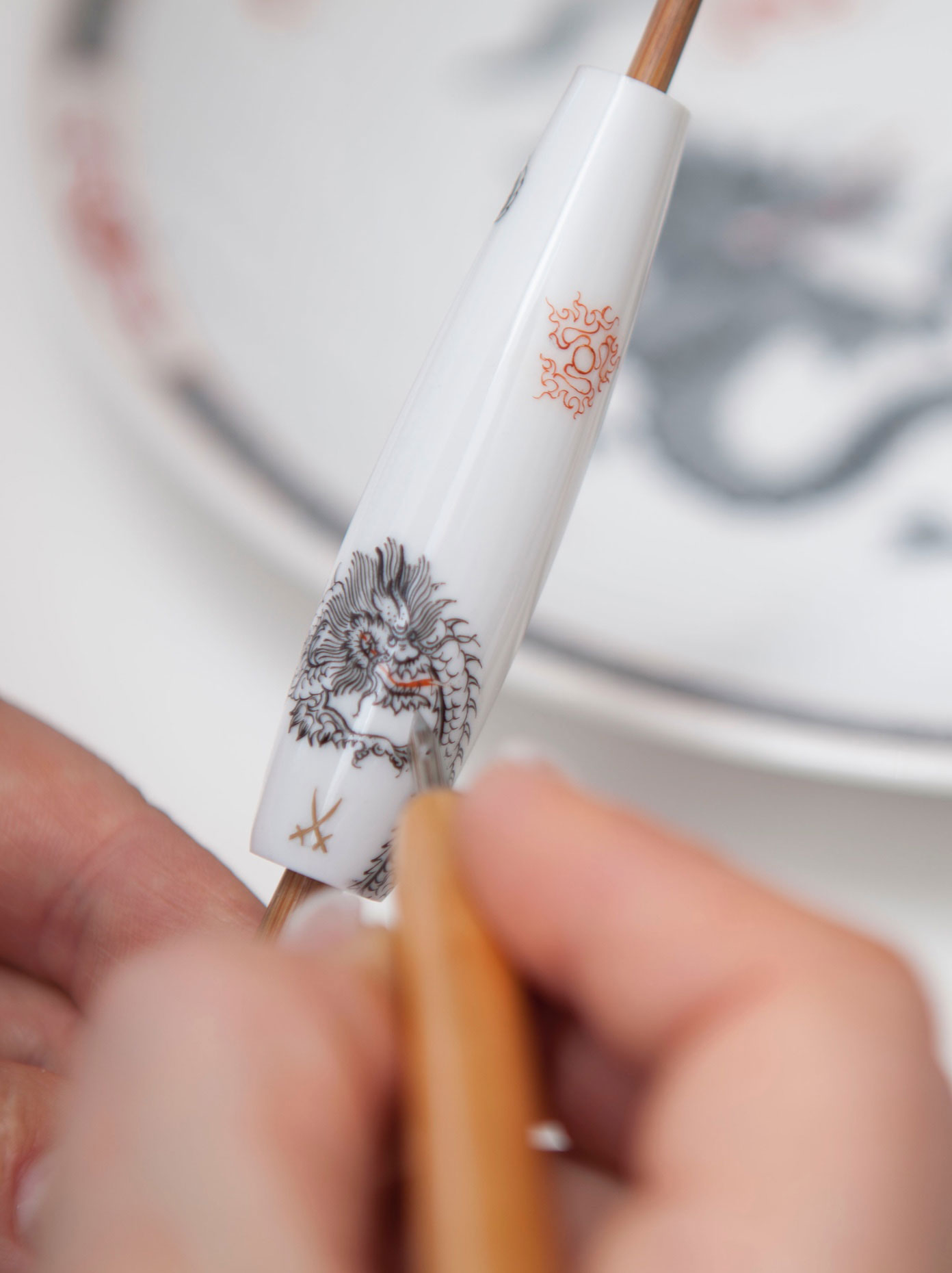 Langlebigkeit, einzigartige Designs und außergewöhnliches Kunsthandwerk sind Werte die Mühle und MEISSEN verbinden und sie zu dieser einzigartigen Kooperation inspiriert haben. Die „Mühle Edition MEISSEN“ umfasst zwei Rasierpinsel, einen Pinselhalter, einen Rasierer und Rasierhobel. Voluminösere Formen und eine ausdrucksvolle Silhouette verbinden sich mit dem für MÜHLE typischen, puristischen Gestaltungsprinzip. Feinstes Meissener Porzellan, verchromtes Metall und erlesenes Pinselhaar spiegeln Extravaganz und das gewisse Etwas wider. Alle Porzellan-Griffköper sind mit dem Meissener "Ming-Drachen" dekoriert. Dieser wird von Hand, durch unsere erfahrenen Manufakturisten, aufgemalt und gehört zu unseren beliebtesten Dekoren. In der chinesischen Philosophie steht der Drache für Weisheit, Stärke und Erfolg und ist damit das perfekte Dekor für den modernen Mann. Jedes Produkt ist dabei ein Unikat und wird nur auf Bestellung für Sie gefertigt.