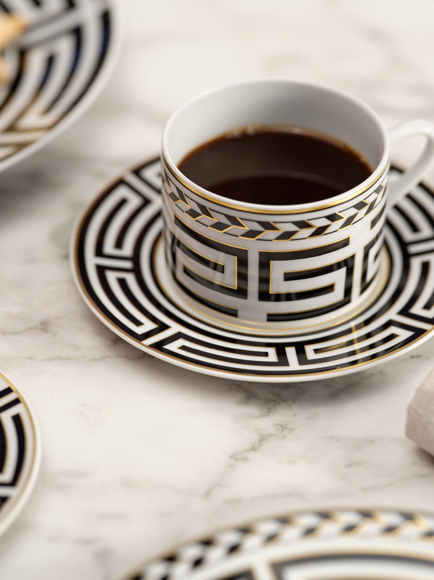 Mit seiner klaren, grafischen Linienführung verleiht „Royal Meander“ der puristischen Form MEISSEN® Cosmopolitan eine moderne Eleganz und verbindet exklusives Design mit Tradition und Zeitgeist auf einzigartige Weise. Besonders eindrucksvoll ist die Kombination mit den zylindrischen Tassen der Serie N°41, die durch ihre klare Formensprache die Modernität des Dekors perfekt zur Geltung bringen. Die harmonische Fusion dieser grafischen Elemente macht „Royal Meander“ zu einem idealen Service für jeden Tag und jeden Anlass. Alle Teile der Kollektion sind spülmaschinengeeignet und vereinen so Eleganz mit praktischer Alltagstauglichkeit.