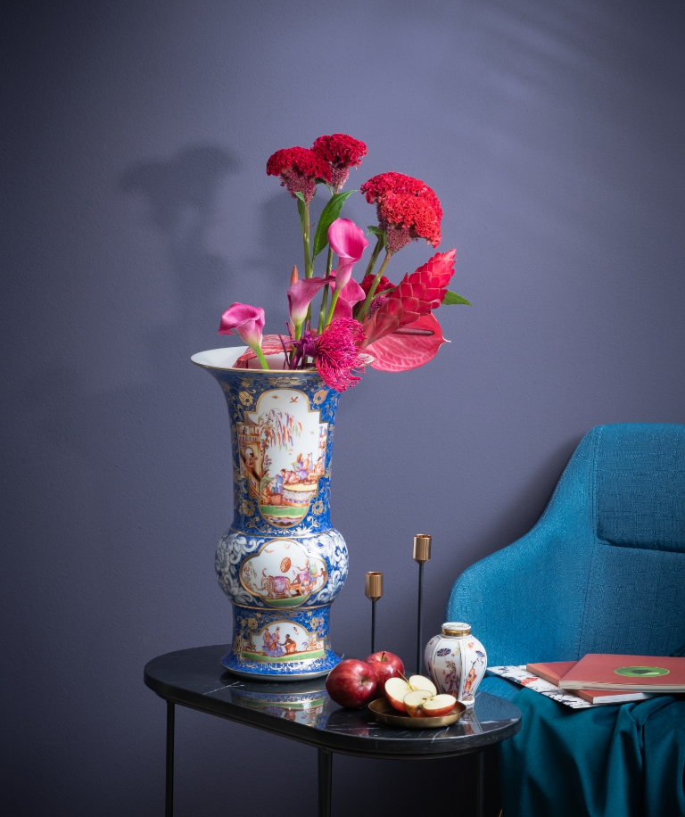 Anfänglich ging der Betrieb in der ersten Porzellanmanufaktur Europas eher schleppend voran. Als jedoch der bedeutende Maler Hörold 1720 zur Manufaktur kam und erstmalig die Schmelzfarben zur dauerhaften Bemalung des Porzellans entwickelte, gelang der Aufschwung. Beflügelt von den neuen Möglichkeiten, entwarf der Künstler unzählige Dekore. Asiatisches Porzellan und Geschichten aus fernen Ländern dienten ihm dabei als Vorlage und weckten zugleich die Sehnsucht nach diesen fernen Orten in ihm. In seinen Kunstwerken auf weißem Porzellan ließ er seiner Fantasie freien Lauf und verwirklichte seine Entdeckerlust, die zahlreiche Europäer begeisterte. Wie ein Trendsetter der damaligen Zeit gilt er damit als Begründer der Chinoiserie der europäischen Keramikmode.
