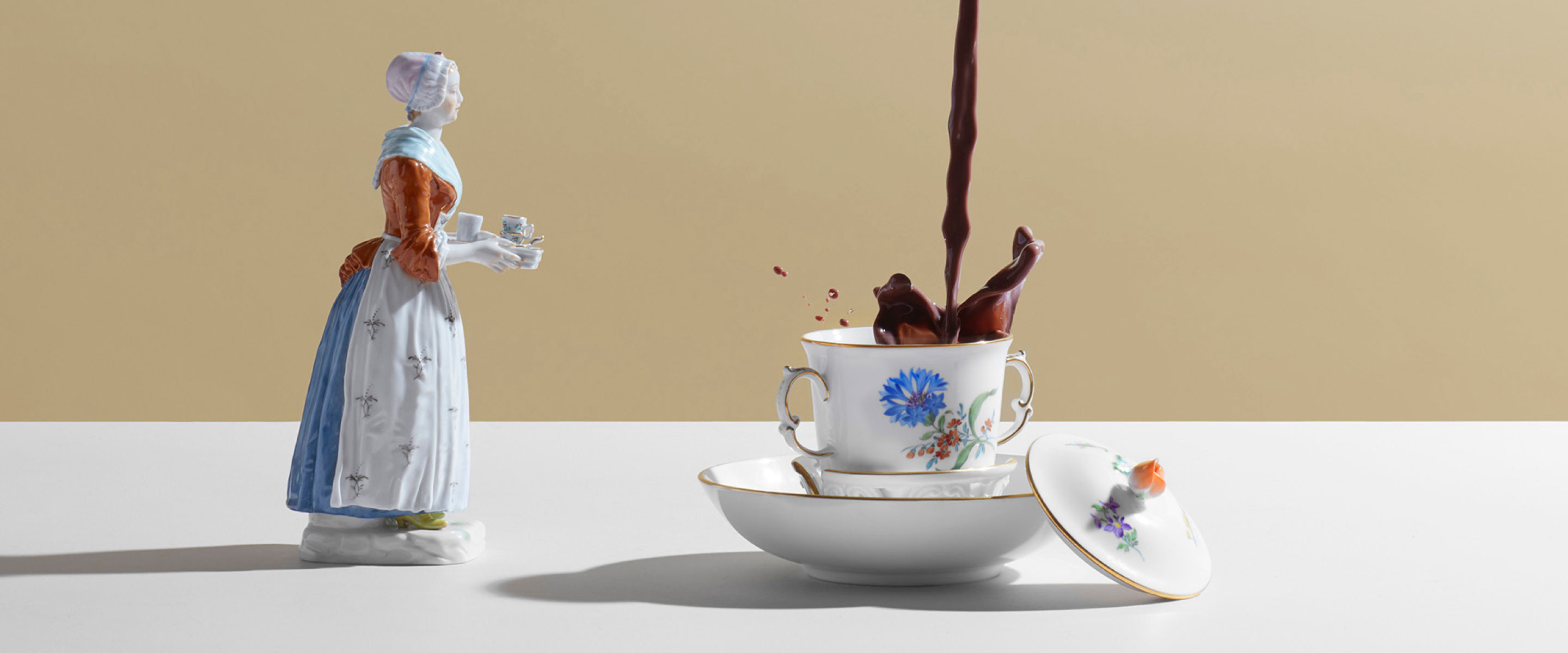Mit unserem „Schokoladenmädchen“ aus Meissener Porzellan holen Sie sich erlesenes Kunsthandwerk und ein Stück Kunstgeschichte nach Hause. Und nach fast 200jährigem Dienst bringt die Meissener „Chocolatière“ sicher einige gute Geschichten für eine heiße Tasse Schokolade mit.