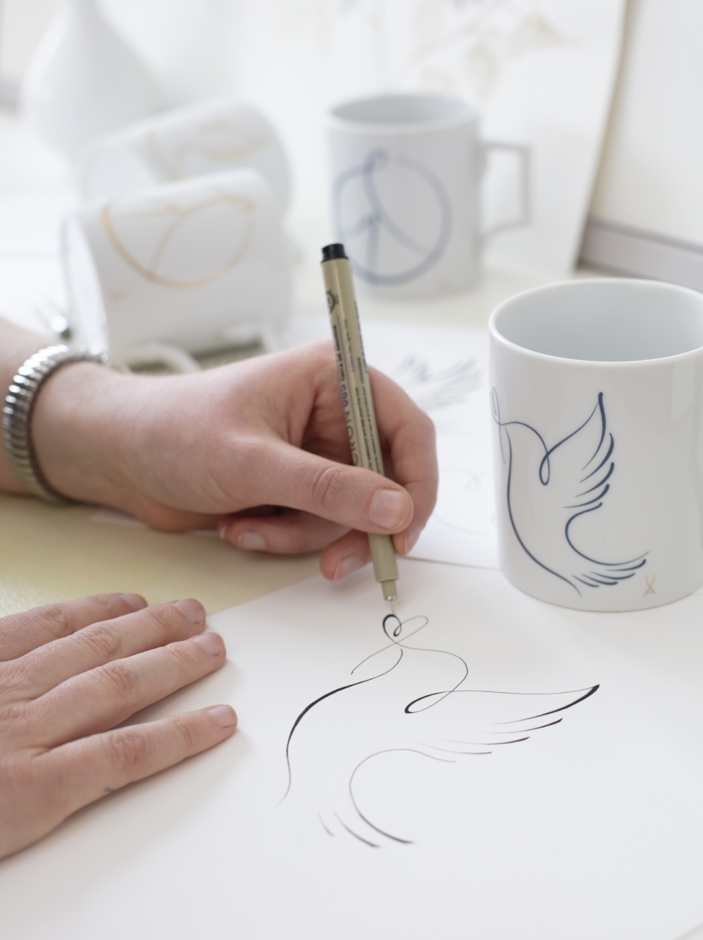 Um ein Zeichen der Solidarität und des Friedens zu senden und einen kleinen Beitrag zur Unterstützung der Menschen in der Ukraine zu leisten, haben unsere talentierten Zeichenschüler die Friedenssymbole neu interpretiert und diese auf unserem ikonischen Mug verewigt. Drei verschiedene Friedens-Dekore in Blau oder Gold zieren nun unsere beliebten Henkelbecher. Sie sind ein Zeichen dafür, dass wir als MEISSEN mit Ihnen gemeinsam für Frieden einstehen und ein Symbol der Hoffnung, das uns alle vereint, um die Welt tragen. Auch unser außergewöhnliches Wandbild „Friedentaube“ wurde neu interpretiert und ist Teil unserer Spendenaktion.