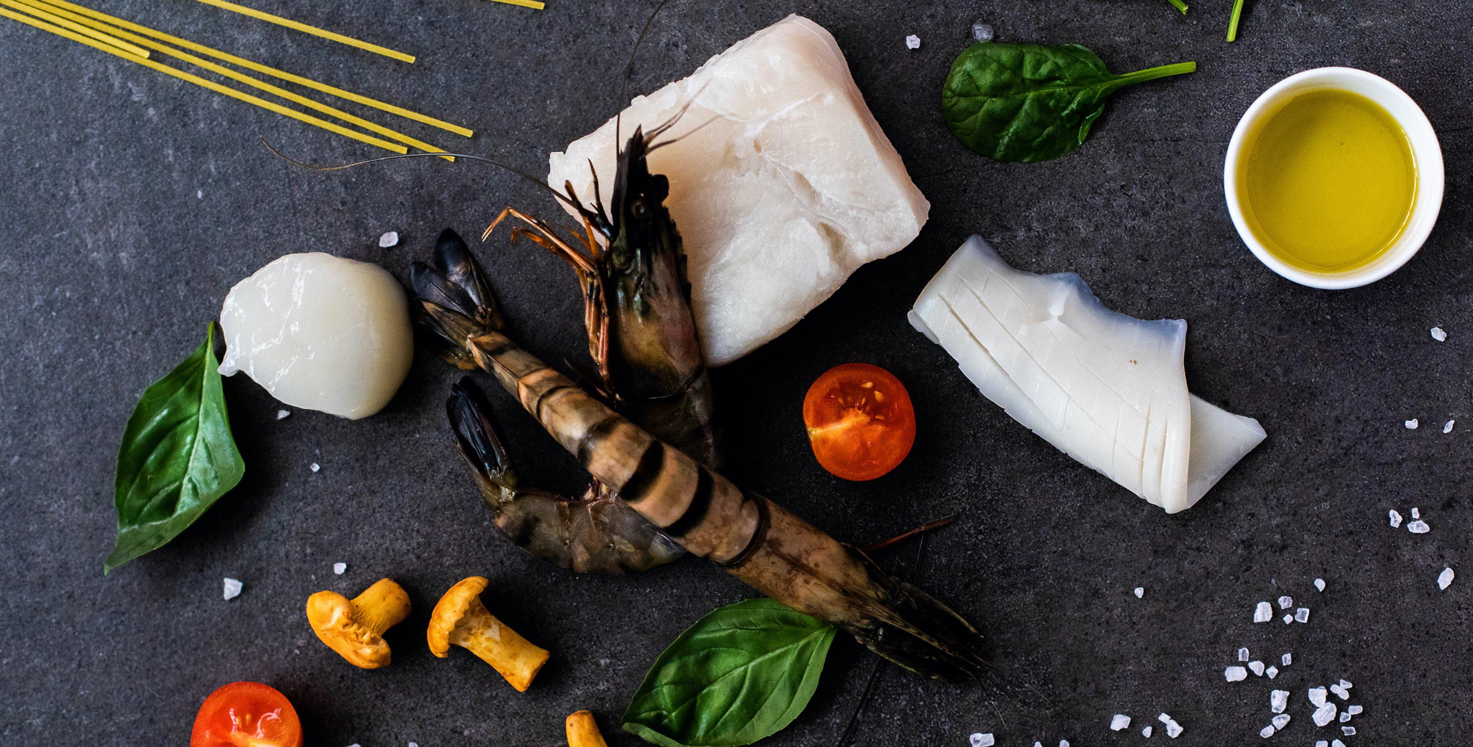 Als erstes die Garnelen, Jakobsmuscheln und Kalmar in Olivenöl braten. Die in Würfel geschnittenen Schalotten dazu geben. Anschließend die Krustentiersauce und die al dente gekochten Spaghettini zusammen in der Pfanne schwenken. Die Spaghettini mit Basilikum verfeinern, auf tiefen Tellern des Service „Maritime“ portionsweise anrichten und heiß servieren. Guten Appetit!