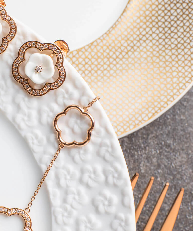Die „Pearl Collection“ ist eine Ode an die natürliche Schönheit von Perlen. Inspiriert von ihrem perlmuttartigen Glanz, reflektieren die Porzellanperlen dieser Kollektion das Licht auf eine einzigartige Weise. Sie stehen für Reichtum, Luxus und Vollendung, und erinnern uns daran, dass wahre Schönheit von innen kommt.