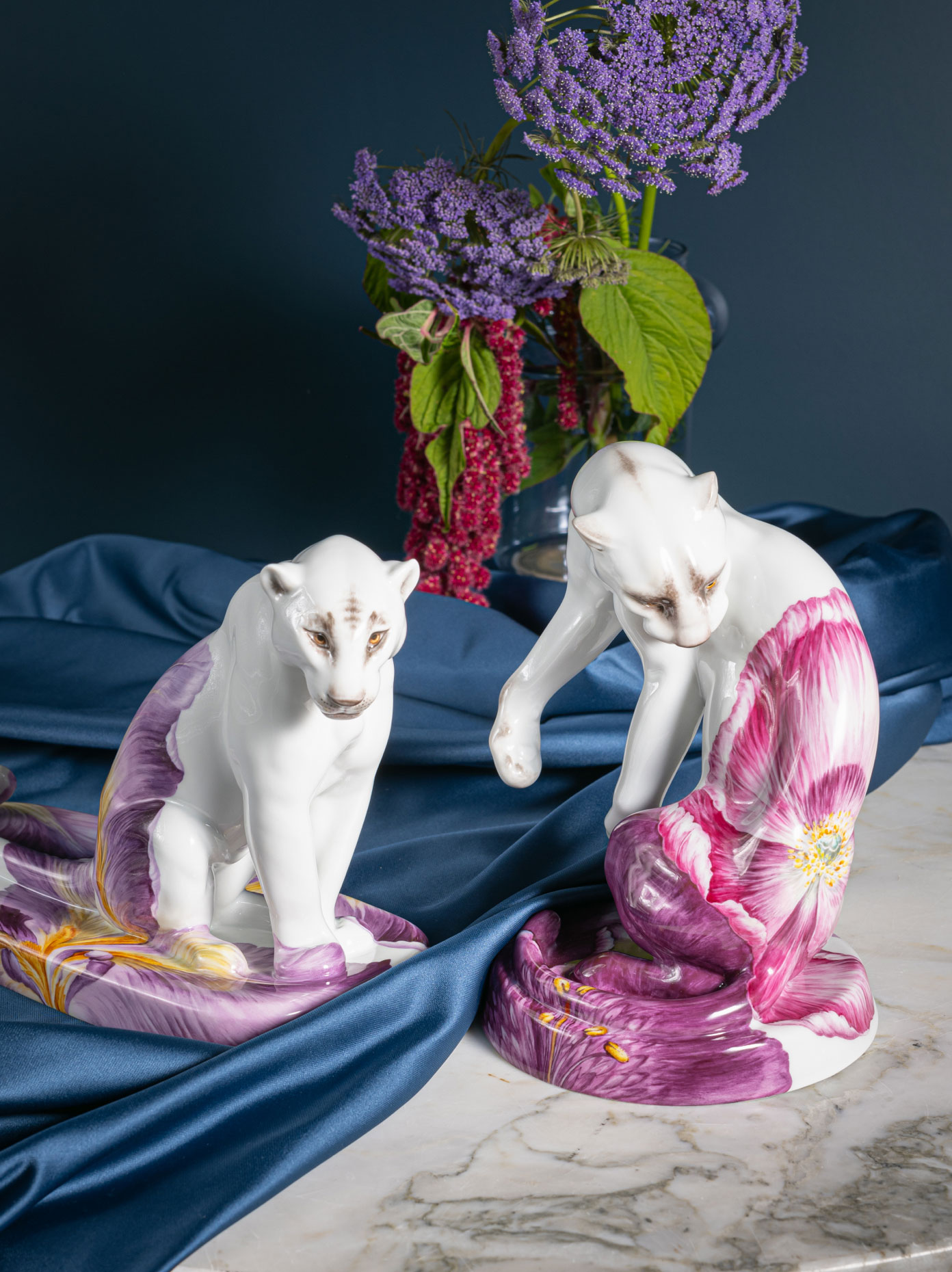 Sind Sie auch Feuer und Flamme für „Viva Magenta“? Dann entdecken Sie die Kombination von rotem und weißem Gold und kreieren Sie mit MEISSEN und der Farbe des Jahres markante Statements voller Leuchtkraft und Optimismus. Sowohl Silber- als auch Goldschmuck können perfekt mit der Trendfarbe kombiniert werden und so sind die Schmuckstücke der „1739 Royal Blossom Basic Rubin“ Kollektion die perfekte Wahl für alle, die ihrem Auftreten Selbstsicherheit verleihen wollen. Auf Tisch & Tafel wird das leuchtende Gerbera-Dekor der „Giant Bloom“ Kollektion zu einem kraftvollen Statement und auch der Panther „Giant Bloom“ zieht alle Blicke auf sich.
