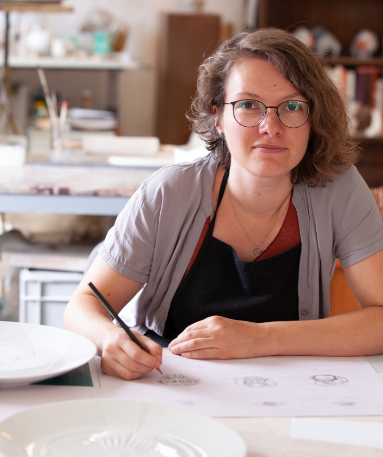 Die heute 30-jährige Künstlerin begeisterte sich schon früh für das Zeichnen und kreative Gestalten mit Ton. Ihre Fähigkeiten vertiefte sie mit Zeichenunterricht und dem Besuch eines Gymnasiums mit künstlerischem Schwerpunkt. Mit ihrem Engagement erfüllte sich Zhuoyu Hou einen Traum – sie studierte Industriedesign an einer der besten künstlerischen Universitäten Chinas, der China Academy of Art in Shanghai. Auf ihrem weiteren Lebensweg führte sie ihr Interesse am Bauhaus-Design nach Deutschland. Dort bot sich ihr die Möglichkeit, an der Kunsthochschule Burg Giebichenstein bei Halle Keramik und Glasdesign zu studieren. Während des Studiums absolvierte sie ein Praktikum an der Porzellanmanufaktur MEISSEN. Gemeinsam mit der Manufaktur realisierte Zhuoyu Hou ihr Abschlussprojekt für ihre Masterarbeit. Der Gedanke, dass ihre Produktentwicklungen die weltberühmten blauen Schwerter tragen könnten, begeisterte sie so sehr, dass Zhuoyu Hou nun seit 2016 als Produktdesignerin hier in der Porzellanmanufaktur Meissen arbeitet. Mit ihrem naturverbundenen Wesen und ihrem Anspruch Schönheit mit dem funktionalen Nutzen der Objekte zu verbinden, ist sie eine Bereicherung für die traditionsreiche und weltoffene Manufaktur.