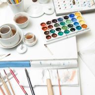 • Porzellantisch "Blumen in Purpur und Grün", H 85 cm
