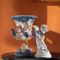• Elementevase Feuer und Krieg, Staffiert und im Medaillon Waffen und Beiwerk, H 67 cm