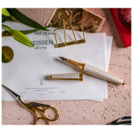 Die Schreibgeräte der MEISSEN Kollektion „Mascara“ vereinen höchste Handwerkskunst mit einem klaren, ästhetischen Anspruch. Jeder Füllfederhalter und Kugelschreiber wird aus feinstem Meissener Porzellan gefertigt und in mehreren aufwendigen Arbeitsschritten von Hand veredelt. Die elegante Formensprache ist inspiriert von der Welt der Mode – sie greift deren Leichtigkeit und Raffinesse auf. Zarte Reliefs und glänzende Metallakzente setzen stilvolle Kontraste und unterstreichen den exklusiven Charakter der Kollektion. So werden die MEISSEN Schreibgeräte nicht nur zu funktionalen Alltagsbegleitern, sondern zu Ausdrucksträgern individueller Eleganz und Wertschätzung für das geschriebene Wort.