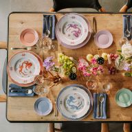 Dabei begegnen sich klassische Stilrichtungen und moderne Formensprachen auf Augenhöhe – ob mit zarten Blütenmalereien, abstrahierten Linien oder grafischen Elementen. Manche Teller entstehen in aufwendiger Handmalerei, andere zeichnen sich durch bewusst reduzierte Gestaltung aus – immer jedoch mit höchstem gestalterischem Anspruch.
