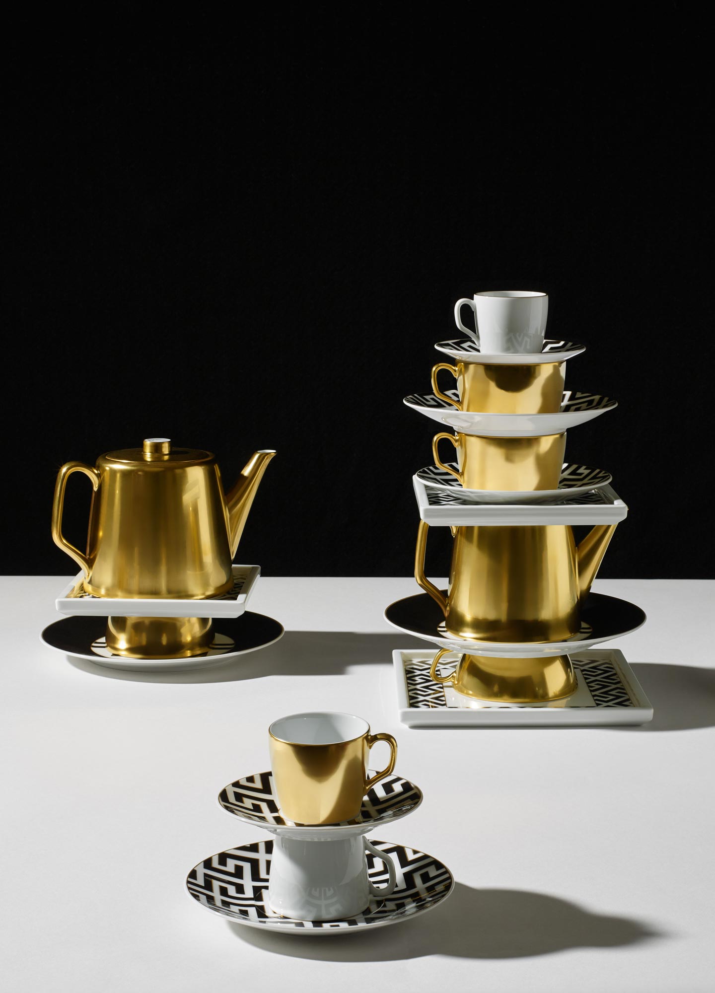 Royal Palace BlackFramed by a fine gold contour, the “Royal Palace” design in elegant, rich black lends the sleek “MEISSEN® Cosmopolitan" form a captivating energy, which is particularly effective in combination with the precious metal detailing of the “MEISSEN® Cosmopolitan” collection. A total of 12 different decor themes can be freely combined with one another. This results in numerous individual arrangements, depending on the occasion or personal preference.