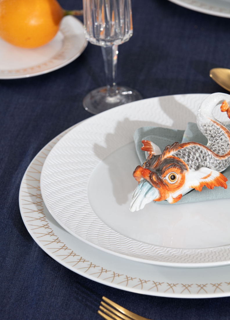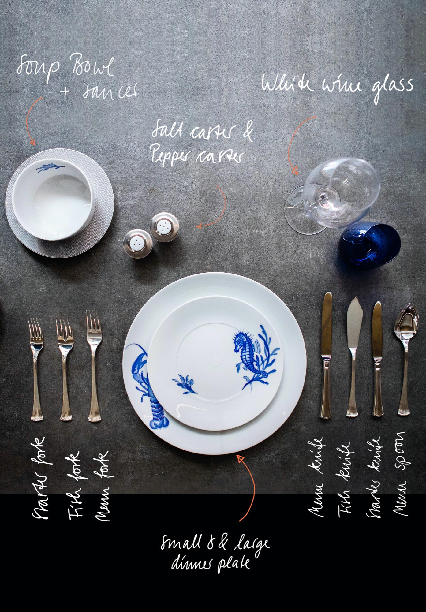 Summer is the season for light fish dishes and seafood menus. As with all table settings, there are special rules to consider when setting the table for fish, crab or seafood, with porcelain tableware requiring dedicated foresight and consideration.
