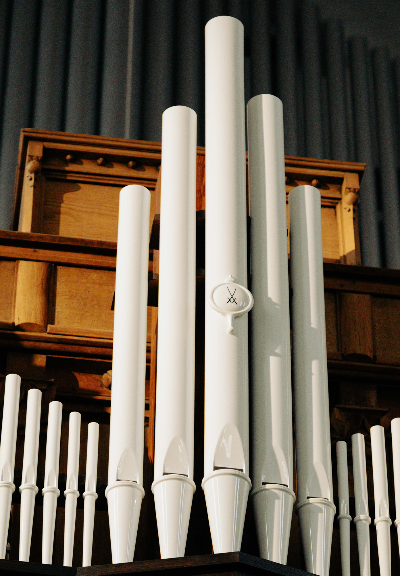 The Jehmlich organ in the Frauenkirche in Meissen was ceremoniously inaugurated as the world’s first church organ featuring sounding pipes made of Meissen porcelain.