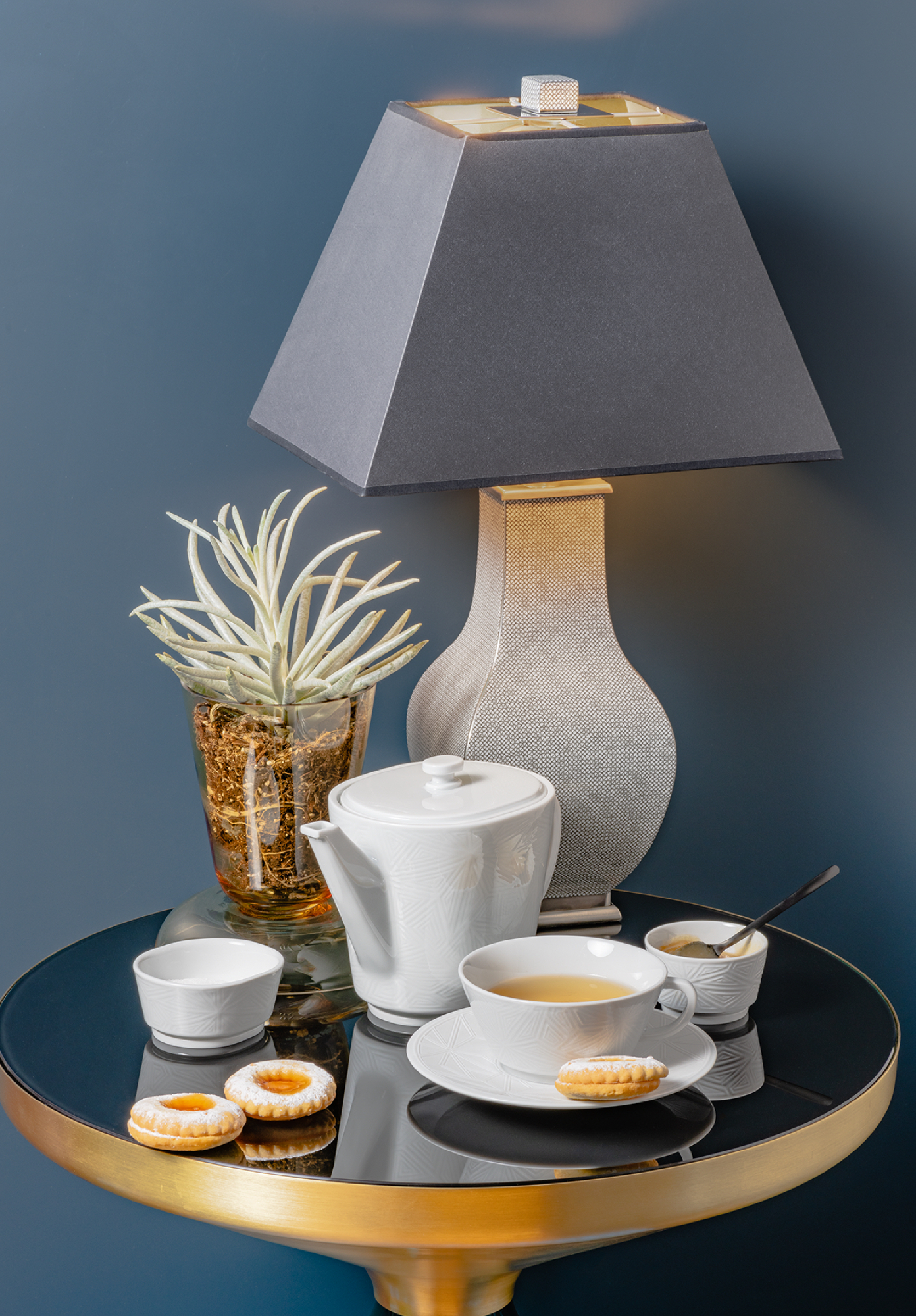 Discover the extraordinary service that combines the straight lines of the "N°41" shape with the sweeping relief of the popular "Waves" shape to create a uniquely modern look.