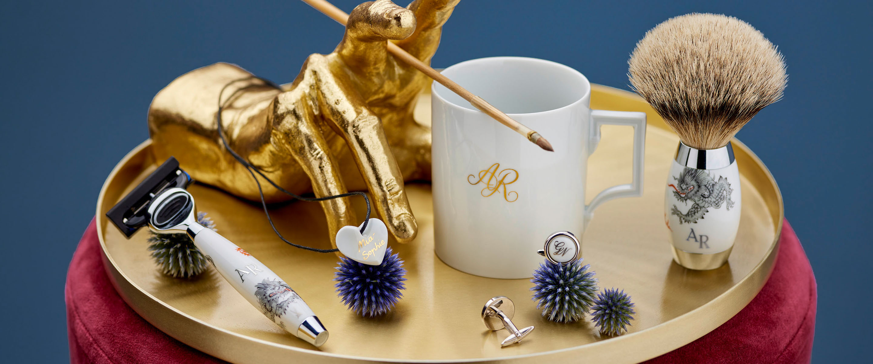 Looking for more gifts that can be personalized? Then feel free to browse our website. Also cufflinks, leather bracelets, shaving brushes, safety razors or other porcelain gifts are designed according to your individual ideas.