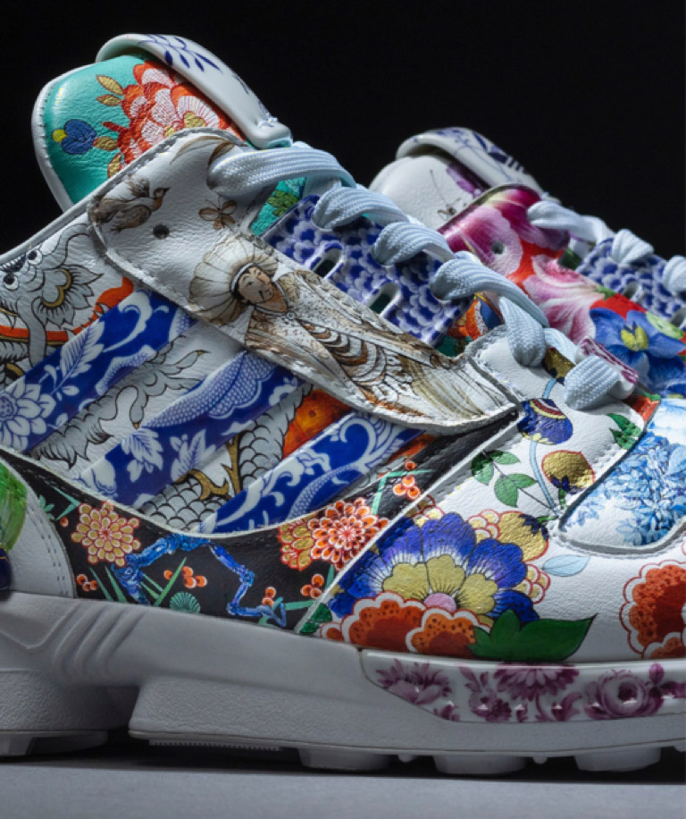 Meissen’s "Onion Pattern" was created in 1731 and remains the most successful blue pattern in the history of porcelain. With "Noble Blue", its elements – peaches and melons on the rim of the plate as well as bamboo stalks and the delicate chrysanthemum blossoms in the centre – are taken up and rearranged for the first time ever. An undertaking that demands the utmost precision and care on the part of Meissen’s artisans. First, the manufactory's proprietary cobalt blue is applied to the unglazed porcelain in a process known as underglaze painting. The porous material immediately absorbs the paint, making any corrections impossible. Details in bright red and radiant gold are also applied by hand but only after glazing and the subsequent gloss firing. When fired again, these special inglaze paints sink into the glaze and are thus protected by it.