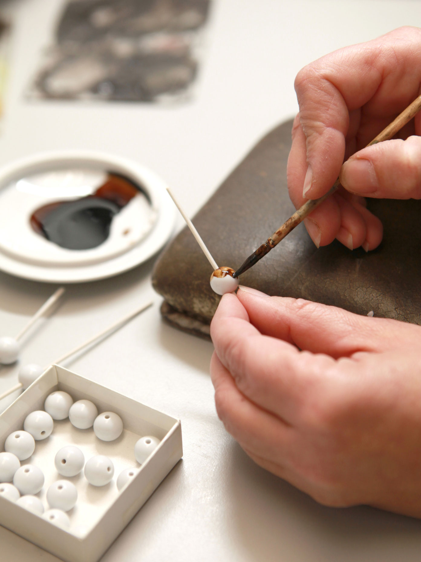 It is different with the porcelain pearls from MEISSEN. Here we know exactly about their origin. Unique craftsmanship with more than 300 years of tradition uncompromisingly meets the incomparable grace and elegance of real pearls. With so-called luster paint, the shimmering luster of natural pearls is recreated. Luster colors belong to the oldest color formulas of the manufactory and have been used again and again on magnificent vases and paintings in MEISSEN since the 18th century. In the final firing, they create iridescent metal oxide layers that reflect the light like mother-of-pearl. As a perfect finishing touch and shining highlight, the porcelain pearls complete our exquisite pieces of jewelry both in our Pearl Collection Pure White, which is oriented on the white color of classic pearls, and in the Pearl Collection Lilac, inspired by lavender-colored freshwater pearls with the unique mystical aura. The perfect gift for their biggest sweetheart or for yourself.