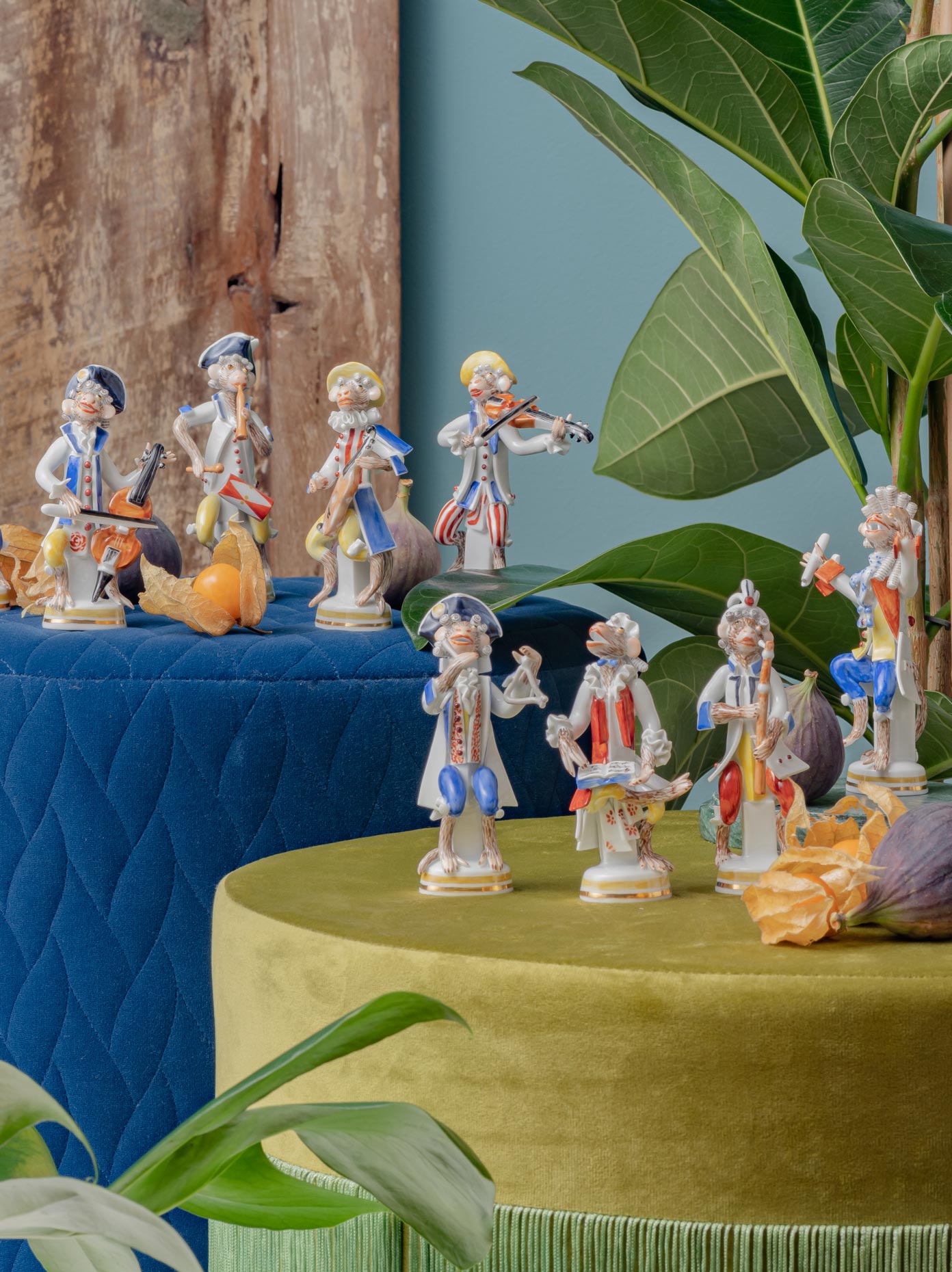 His works of the recent years were characterized by an intensive decoration of the figurative works, through which Peter Strang presents the wide color spectrum of the manufactory. An increasingly higher degree of abstraction also accompanies his works. On the occasion of his 85th birthday, MEISSEN presented a special edition depicting a porcelain painter and a sculptor - a self-portrait while working on his famous figure "Utz". Also part of the special edition was the clown "Künstlerkapelle mit Saxophon" (artist's band with saxophone), which is limited to 85 pieces, and another clown that Peter Strang designed back in 1987. These figures have now been reissued and are additionally marked with the year 2021.