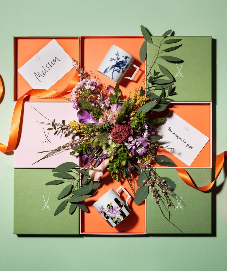 Inspired by a vortex, as in snail shells, twisted shells or rose petals that slowly open, Zhuoyu Hou developed the new "Twist" series of boxes, adding a new design language to the manufactory's repertoire. She chose the geometric cylinder shape as the basic form and brought it to life with symmetrically divided curved surfaces. The curved lines that divide the surfaces glide gently downwards from the centre like a vortex. What is special about this is that when the viewer looks at the organically shaped box from above, they will recognise the Snowball Blossom so typical of MEISSEN.