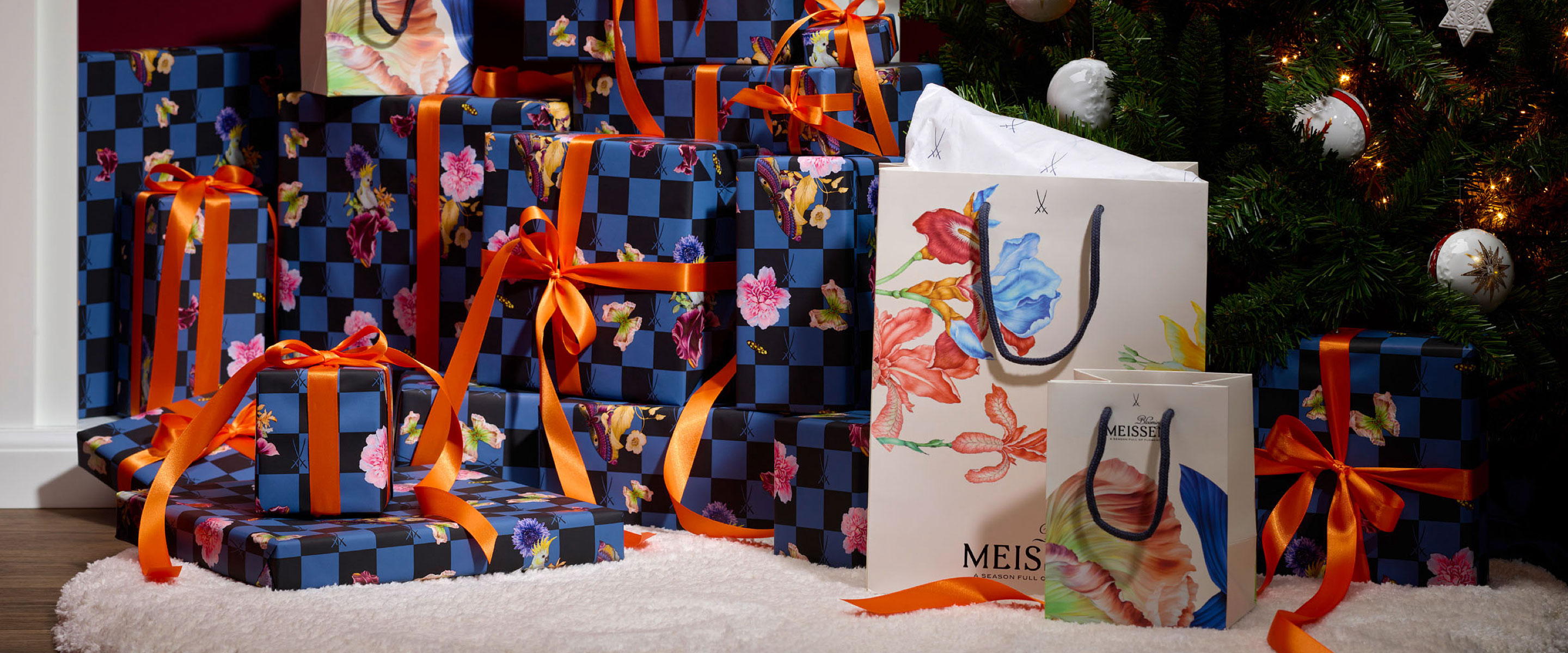 At MEISSEN, it is very important to us that our porcelain is not only lovingly handcrafted, but that we make "gift-giving" an unforgettable experience. That's why almost every piece of Meissen porcelain comes in high-quality, modern gift packaging that people will love to keep. Combined with our exceptional wrapping paper with MEISSEN designs, your gift will be something very special and a highlight under the Christmas tree. We also have the perfect solution for your personal words, because our unique greeting cards with exclusive MEISSEN motifs are the perfect stage for your messages. Your "gift-giving experience" is rounded off with a beautiful bow in our MEISSEN colors - so that you really make everyone's eyes light up at Christmas!