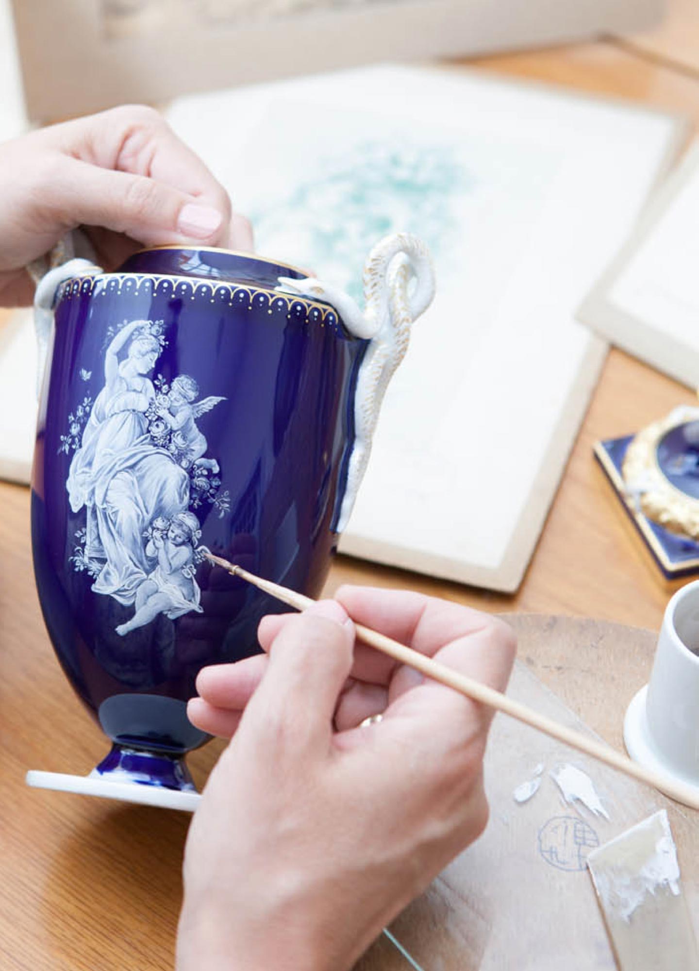 Meanwhile, the manufactory’s paint laboratory while constantly formulating new, vibrant hues closely guards the formulas for approximately 10.000 different porcelain colours, enabling the Meissen painters to revive every nuance of historic patterns true to the originals. This rich trove of historical inspiration in Meissen’s Triebischtal, not far from the Saxon capital of Dresden, is combined with peerless craftsmanship to create intricate figurines, large-format sculptures, exquisite dining services, and one-of-a-kind works of art that attain the highest standards of exclusivity and individuality.