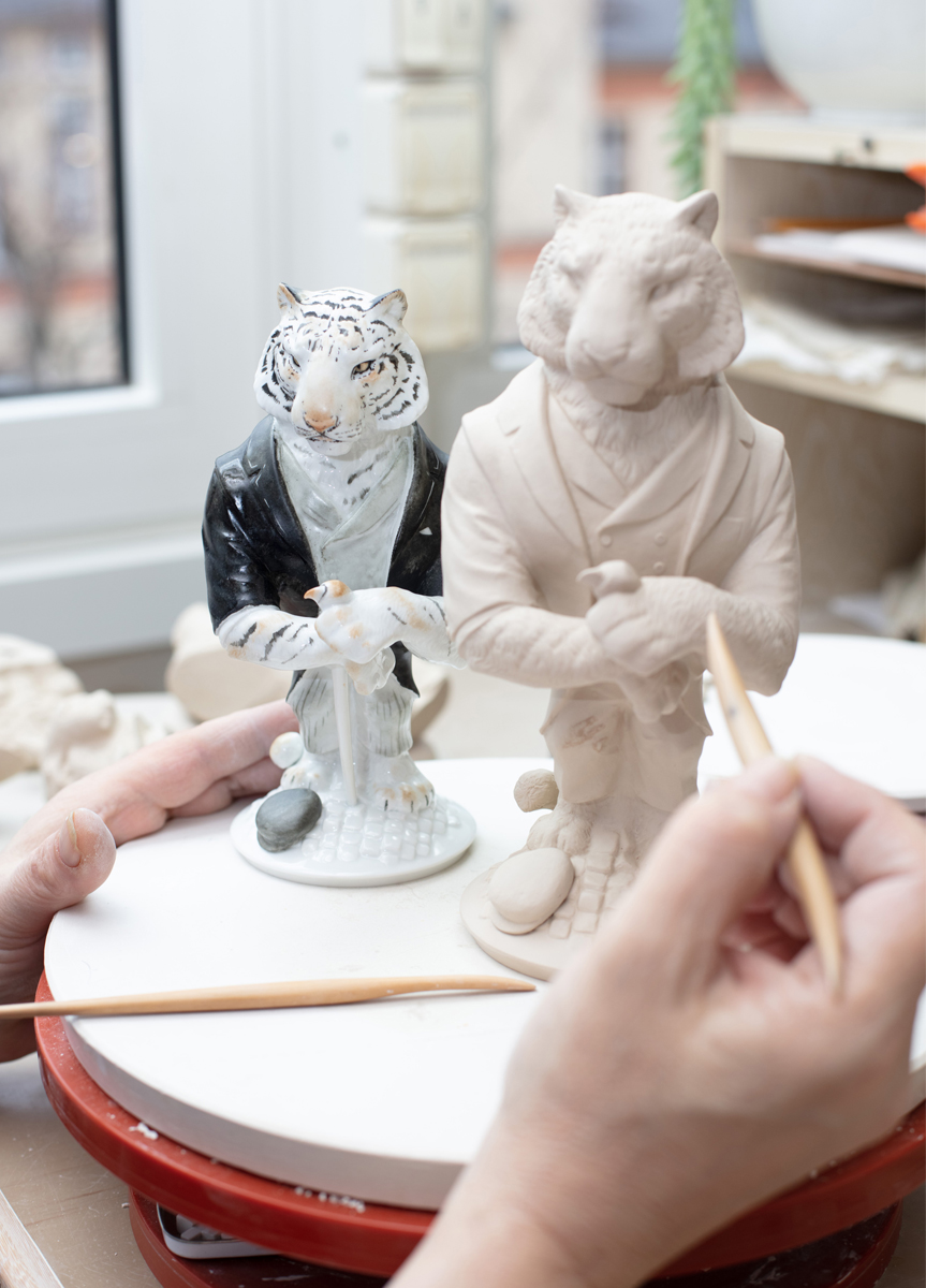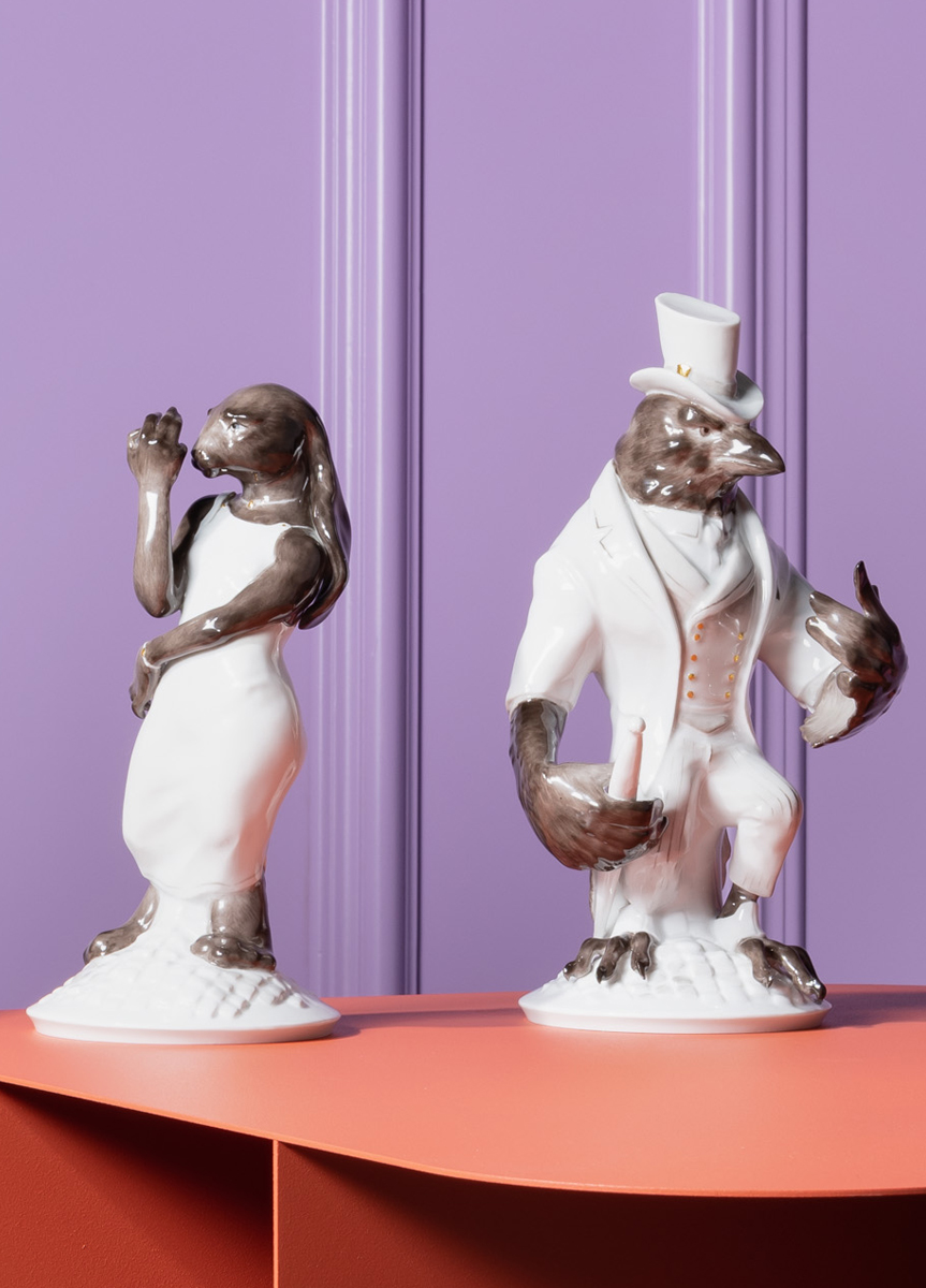 With his “Ladies & Gentlemen” figurine series, MEISSEN artist Maximilian Hagstotz aims to remind us of the importance of fundamental human values. Virtues such as patience, punctuality and respect take center stage and are symbolically embodied by the animal figures depicted. As “Ladies & Gentlemen”, they are intended to create an awareness of the need to treat each other with respect, patience and care and to value the time of others.