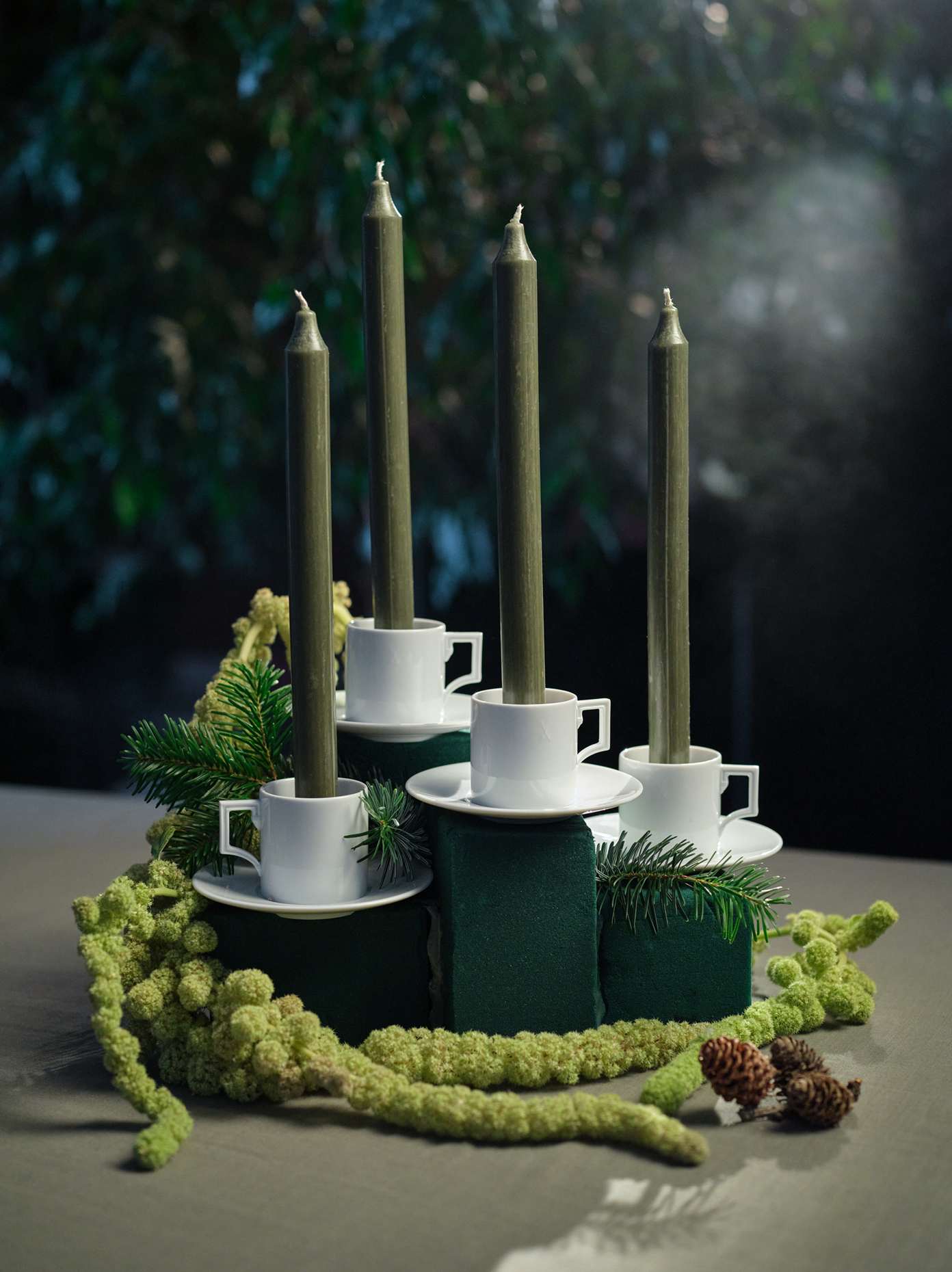 A particularly stylish way to decorate the Advent wreath is to integrate exclusive porcelain. This year, our MEISSEN Advent wreath is adorned with small espresso cups made of Meissen porcelain. These miniature works of art are a real highlight and give the traditional wreath a modern and elegant touch. They are a wonderful alternative to conventional candle holders. Simply place a candle in each cup and you have a stylish combination of candles and porcelain art. Stick candles in particular fit well in the cups and create a harmonious play of light. We hope you enjoy making your own and wish you a peaceful Advent season with your loved ones!