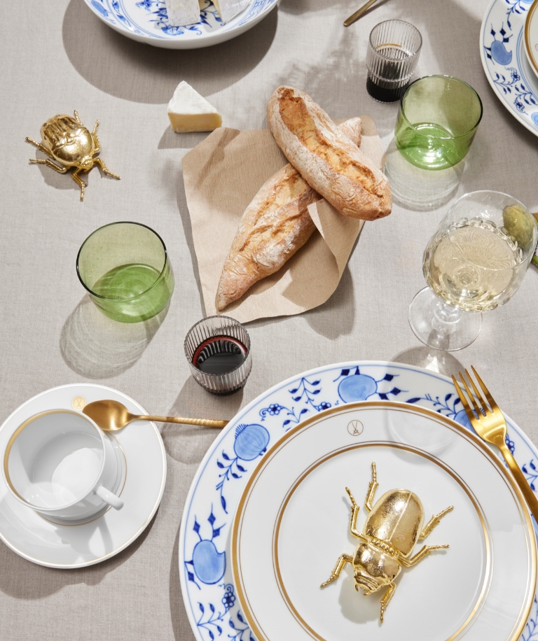 The colour blue holds a very special meaning for MEISSEN as well. As one of its first pigments ever developed, Meissen’s cobalt blue is one of the greatest achievements of the manufactory’s paint laboratory – a blue that brings out the gleaming white of porcelain while at the same time harmonising with it. This colour also marked the birth of a design tradition – Meissen’s blue painting technique –laying the foundation for iconic designs such as the “Onion Pattern” and, not least, the Crossed Swords, which adorn every piece of Meissen porcelain to this day as a marker of excellence.