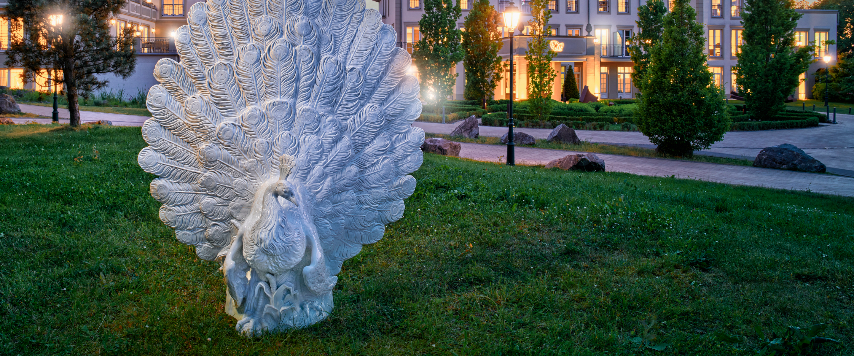 • With the installation of the porcelain animal sculptures in the ultra-modern hotel complex, as well as the adaptation of the iconic works on fabulously beautiful wall installations, a bridge from tradition to modernity has been built in an impressive way. The figurines used, from the wheel-beating peacock, to the noble heron and the macaw, to the monkey with a snuffbox, are an important piece of MEISSEN history, dating back to the early 18th century. Many of these figurines are originals that were originally created by Johann Joachim Kaendler, one of MEISSEN's most important porcelain modelers. Hired by Augustus the Strong himself as a court sculptor and modeler at the porcelain manufactory, Kaendler began early on to make the king's dream of a castle made of pure porcelain come true. Thus, starting in 1731, he created numerous animal sculptures for the Japanese palace, which have now been recreated for the cooperation with the Nature Resort & Spa Schindelbruch.