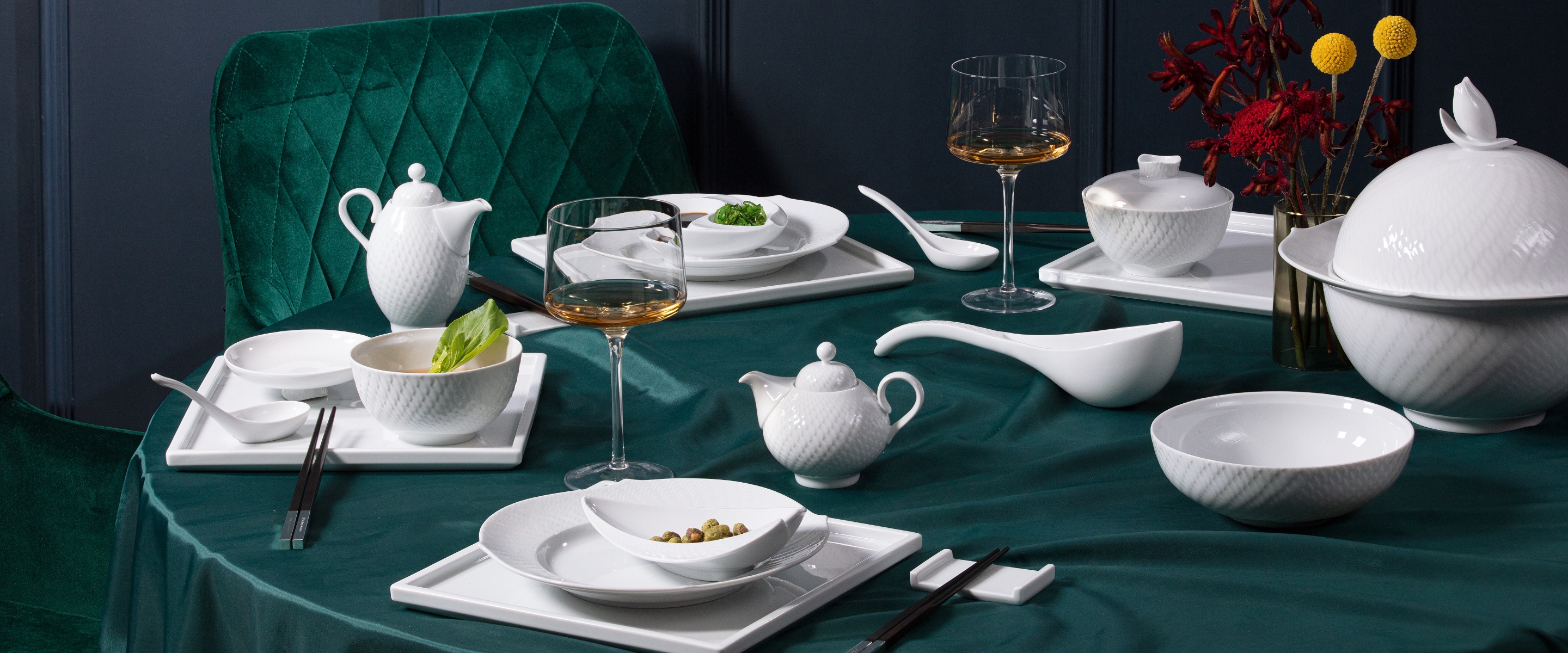 2021 the service "Waves" was celebrating its 25th birthday and is also one of the most popular white dishes from MEISSEN. In Asia in particular, the shape of the "Waves" is very popular. That is why MEISSEN is now supplementing the existing collection with porcelains specially developed for the Asian table culture. The connecting element between the original shape and the extension is the "Wave Relief" decor. The design of reliefs is a great artifical strength of the manufactory and reflects their extraordinary craftsmanship. From noodle bowls to rice and sauce bowls, the service "Wave Relief Asia" offers the perfect porcelains for lovers of Asian cuisine and is also wonderfully suitable for European dips, salads or muesli.