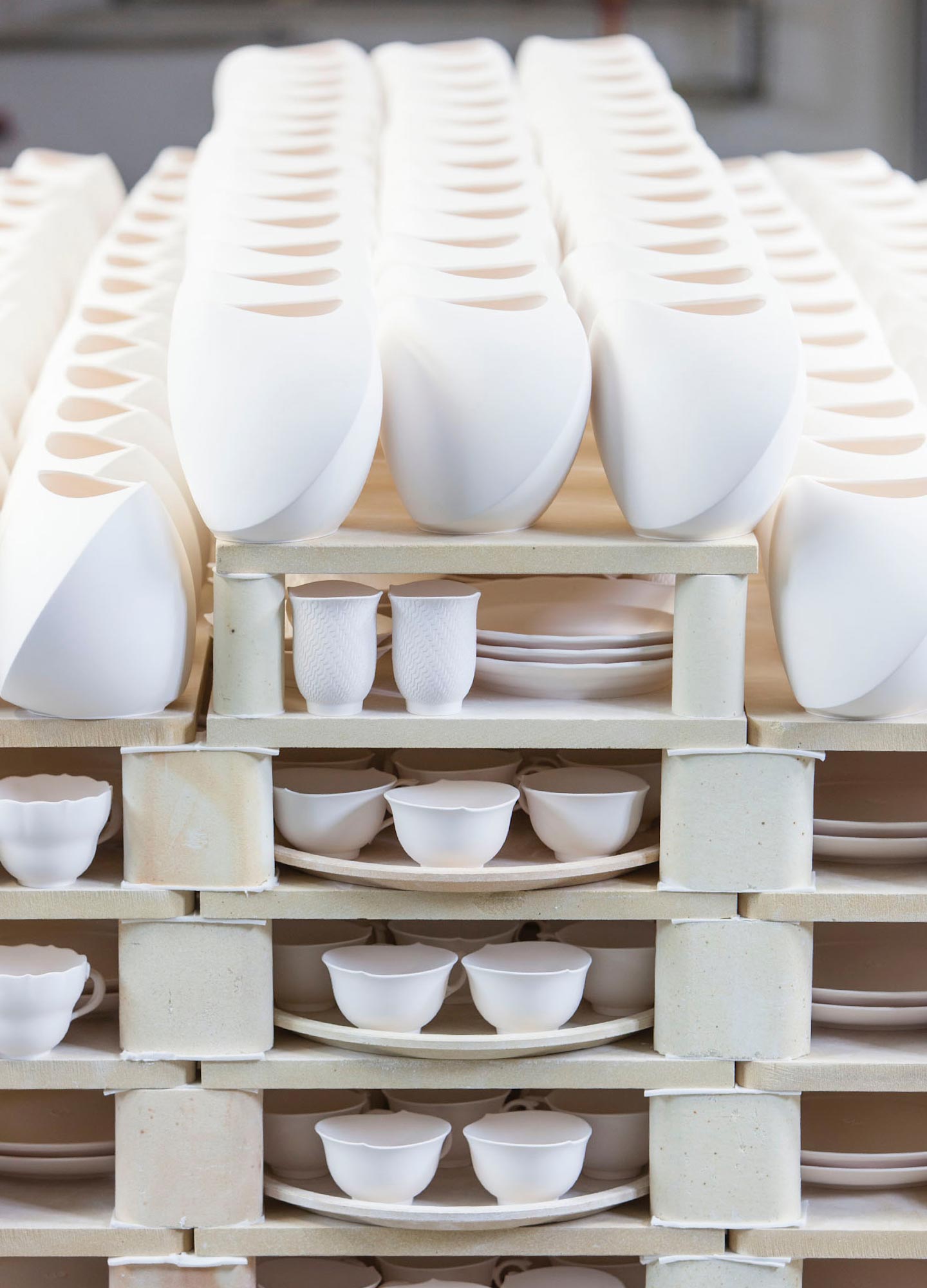 Biscuit FiringAlong with the composition of the porcelain paste, it was significant advances in firing technology that made the invention of porcelain possible in Meissen at the outset of the 18th century. Porcelain pieces spend hundreds of hours in the kilns at different temperatures – starting with their biscuit firing at around 950° C right after they have dried. It is this first firing that lends the pieces their structural integrity along with a porous surface. Any under-glaze decorations along with the “Crossed Swords” on all Meissen porcelains are applied directly onto the biscuit porcelain. -