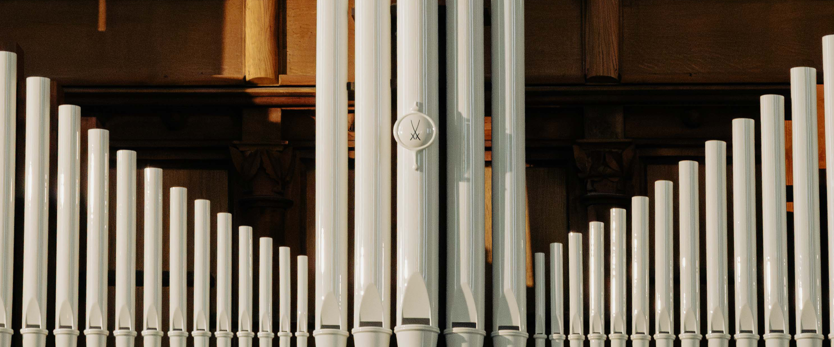 • On Pentecost Sunday, June 8, 2025, a significant chapter in the history of music and porcelain was written: The Jehmlich organ in the Frauenkirche in Meissen was ceremoniously inaugurated as the world’s first church organ featuring sounding pipes made of Meissen porcelain. A total of 37 pipes made from the so-called “white gold” were added to the historic instrument – a unique symbiosis of traditional organ building and masterful craftsmanship, unparalleled anywhere in the world.