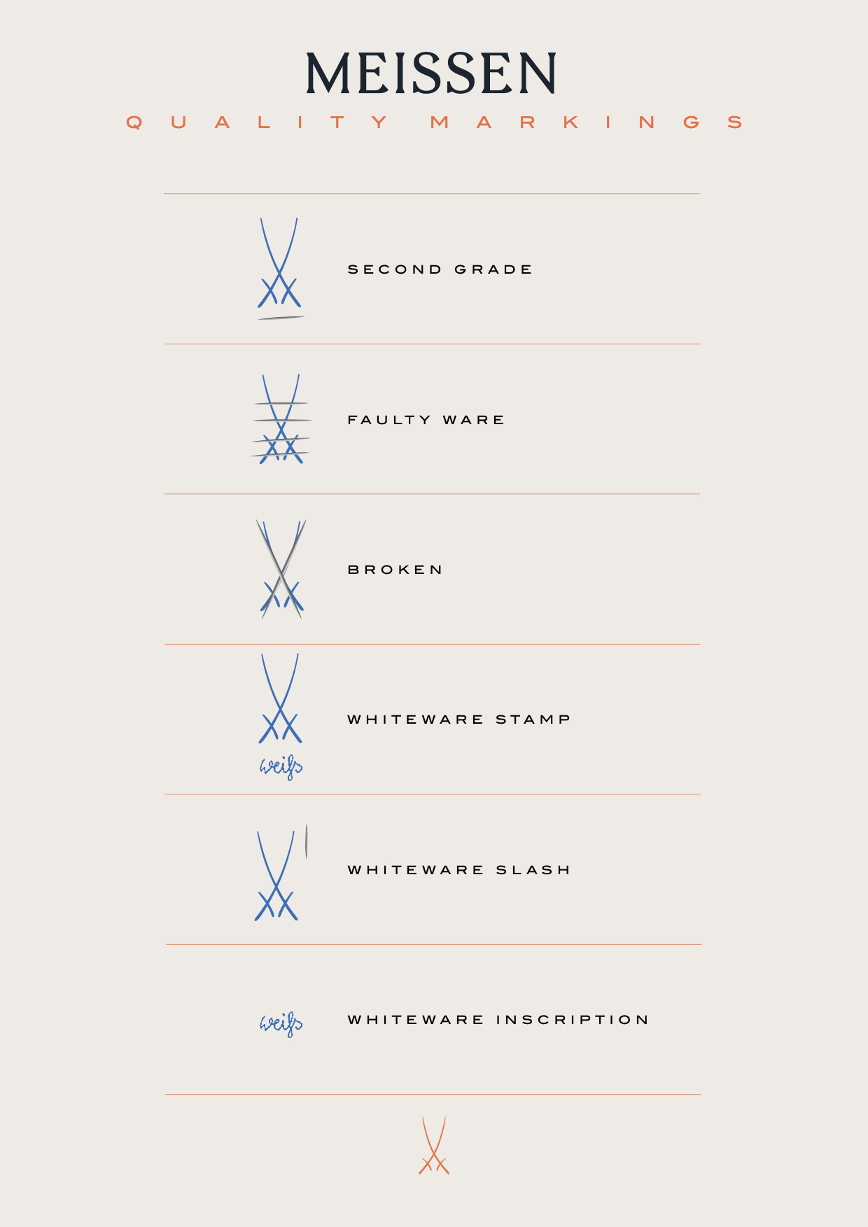 The porcelain is not of top-quality grading. The following quality markings exist: