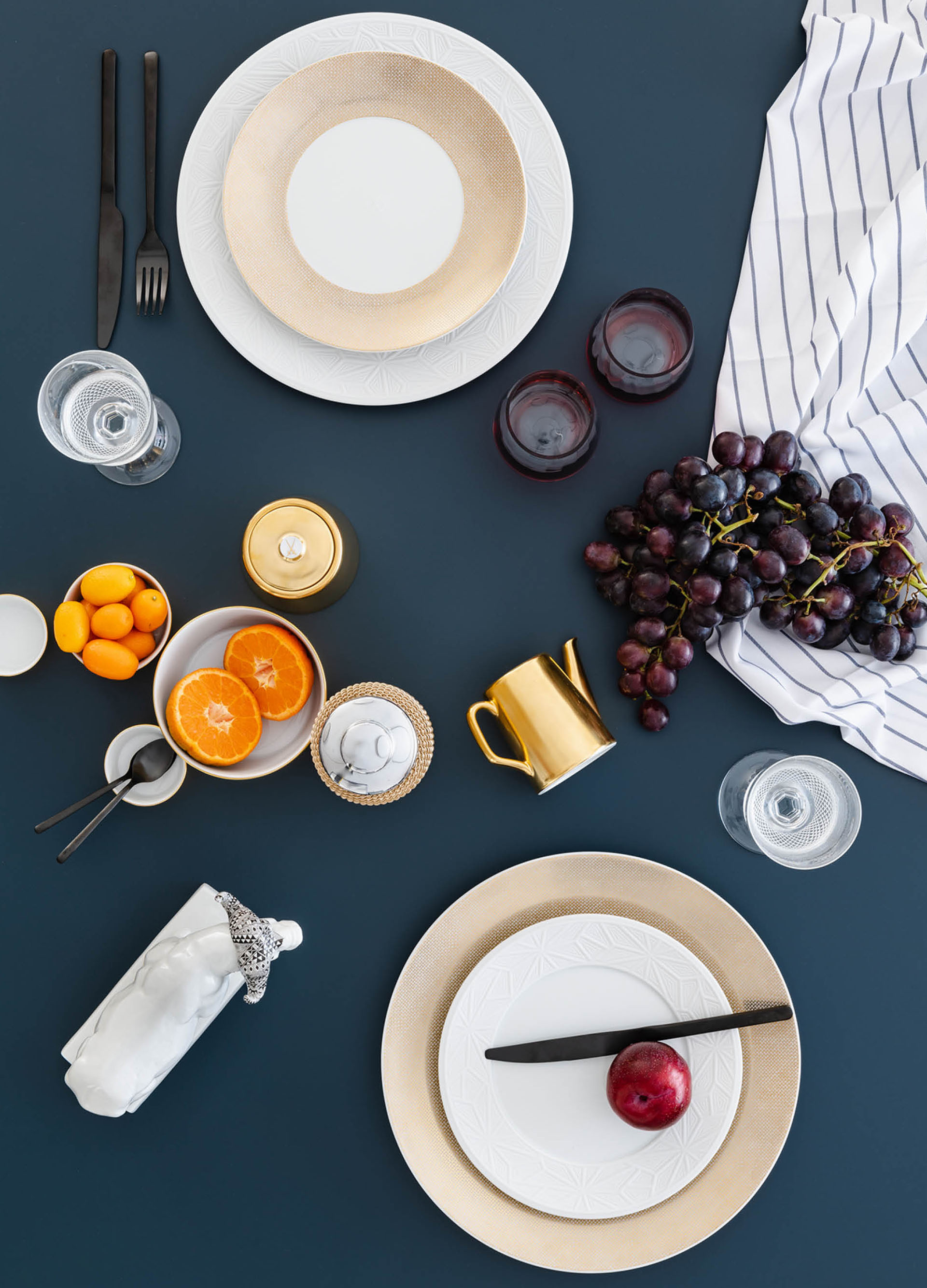 MEISSEN® Cosmopolitan pays homage to the splendour of modern Grand Hotel silverware, presenting an extensive tableware series in crisp and clear design. The “MEISSEN® Cosmopolitan” collection takes on a unique role in Meissen’s product portfolio, allowing unprecedented variability in combining its objects, both within and between decor variants. More than ten different decorative designs are realised within the collection. This variability along with the collection’s effortless elegance pave the way for a contemporary dining culture. Alongside its classic white variant, showcasing Meissen porcelain’s coveted lustre, the collection also presents a thoroughly novel design approach – gold- and platinum-enamelled surfaces, and the more subdued “Mesh Structures”. All finishes have been applied by hand, channelling the manufactory’s artisanal tradition into a thoroughly modern tableware design.